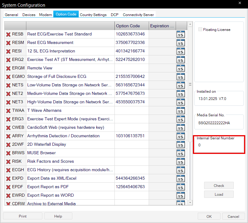 - Look for the Internal Serial Number. If it's 0, that means the software isn't detecting the device
