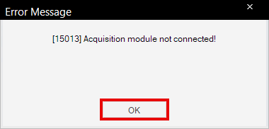 If you get the error message Acquisition module not connected! Follow the steps below to troubleshoot this issue.