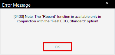 [6400] Note: The "Record" function is available only in conjunction with the "Rest ECG, Standard" option!