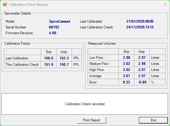 SpiroConnect Calibration Verification Check Process
