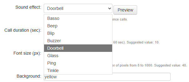 - Sound effect is the alert that occurs to announce the call; the default and most used is the Doorbell