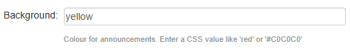 - Background is the colour of the call announcement as it appears on screen. You can either enter a colour name (must be a single word) or if you know the HEX code for the exact shade you can use that