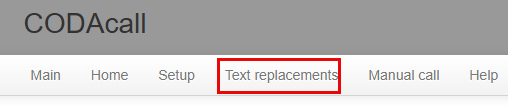 You can access the Text Replacements from the menu at the top of the Patient call webpage.
