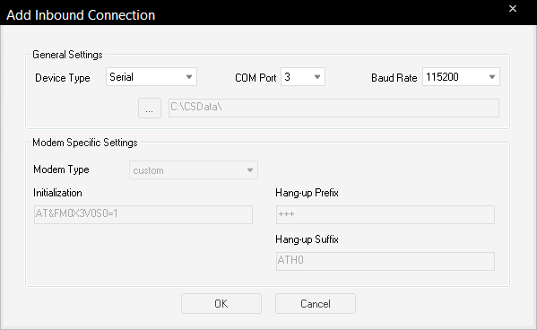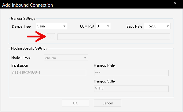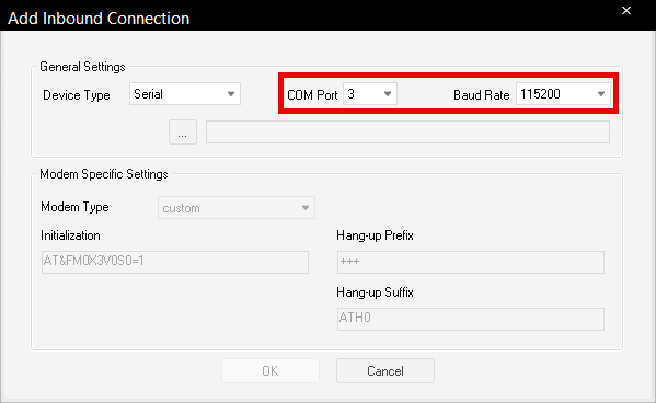 19. Set the COM Port to match the COM number assigned to the USB converter and the baud rate to 115200.