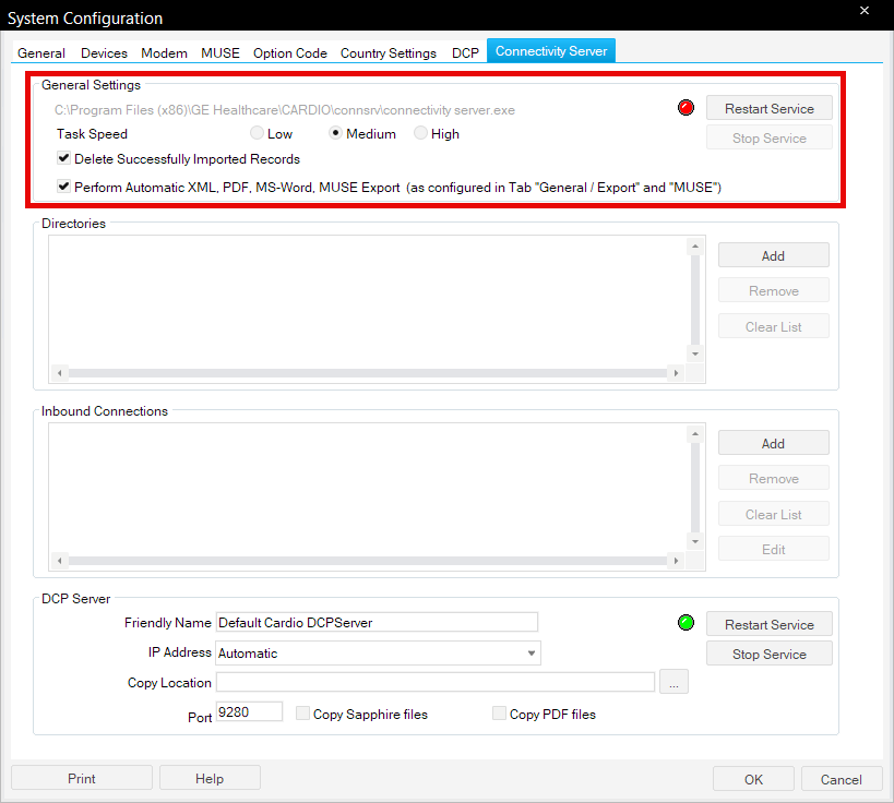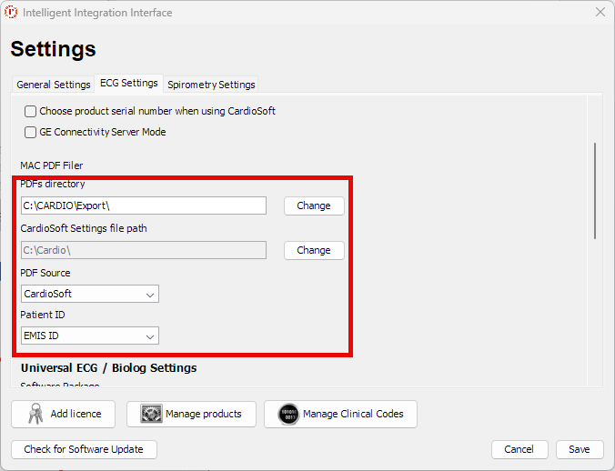 8. Click the ECG Settings Tab and set the PDFs Directory to
