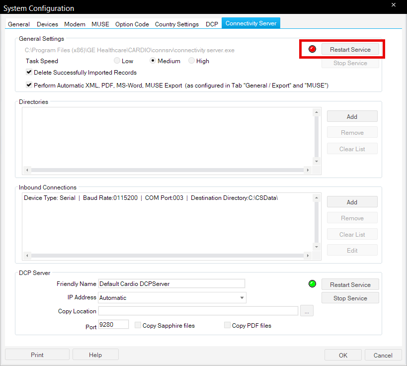 23. Click Restart Service, the red circle should then go green