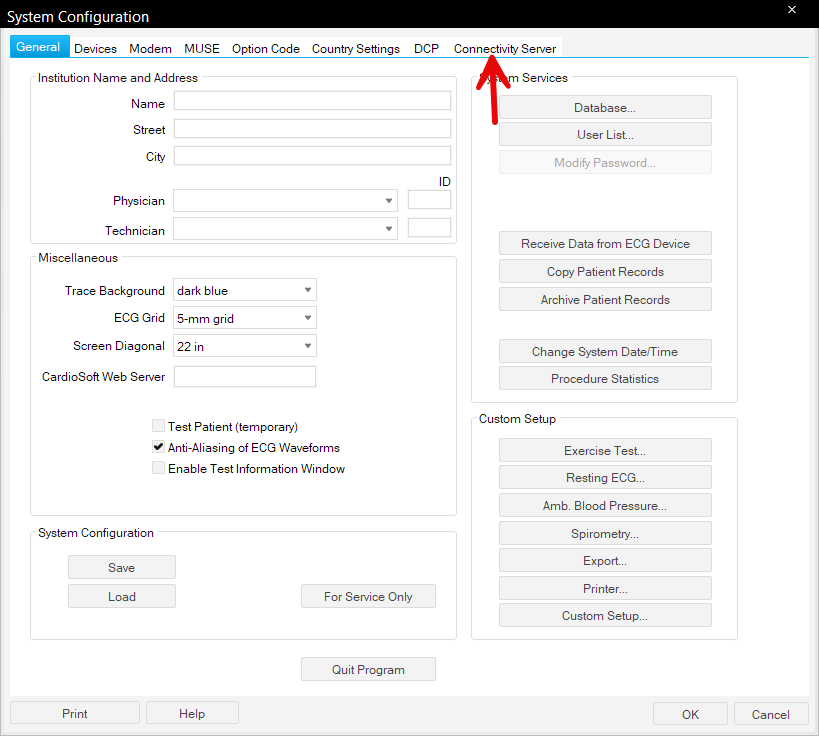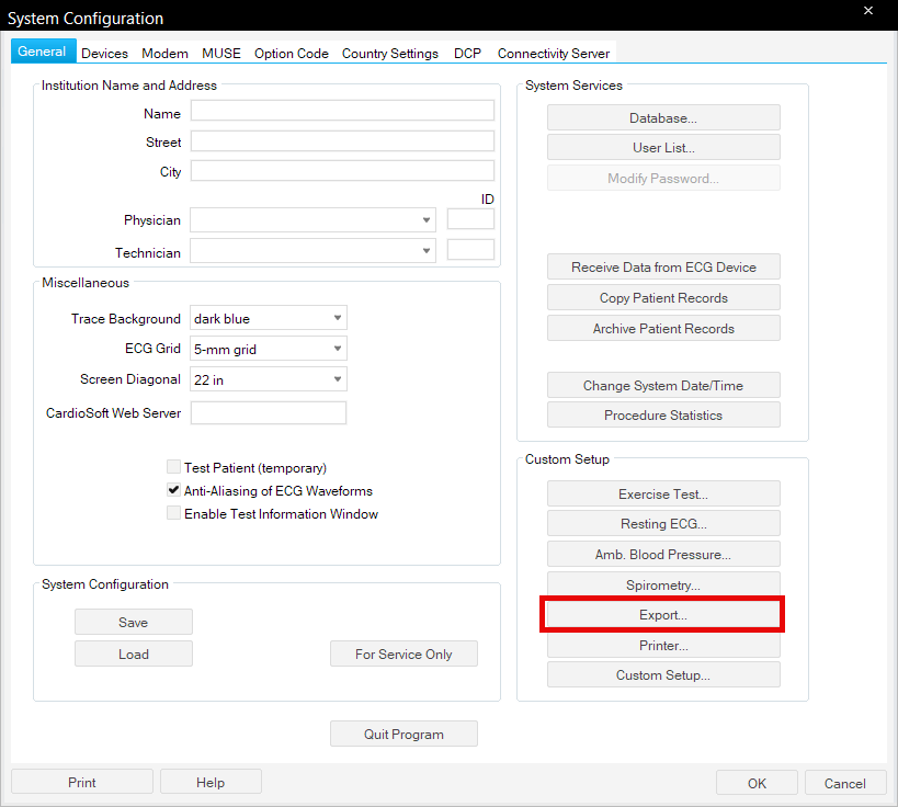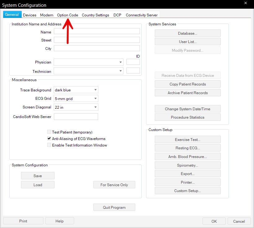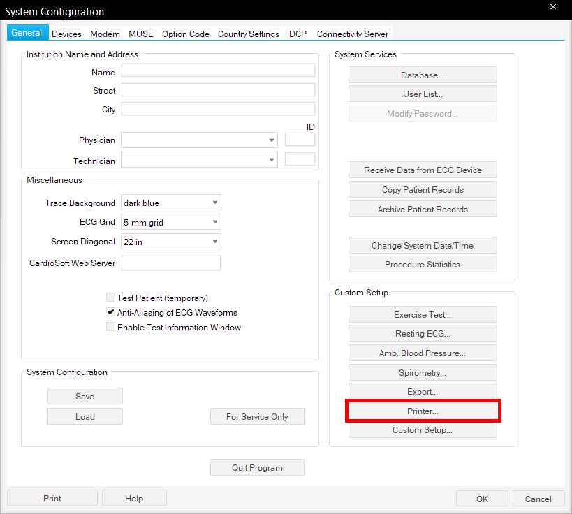 Configuration of CardioSoft Software