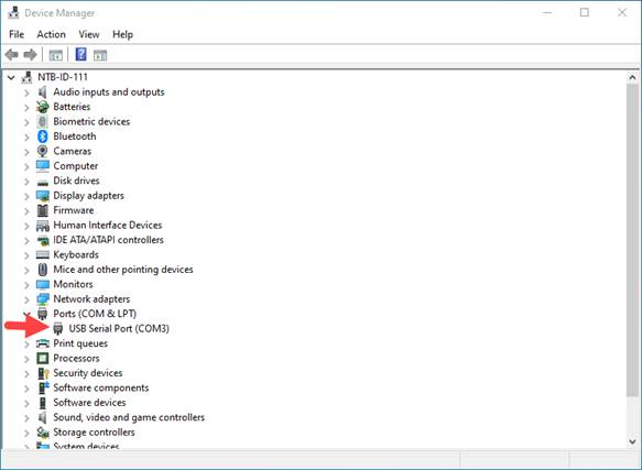 7. Go to the device manager and make a note of the USB Serial Port COM number (won’t necessarily be COM3)