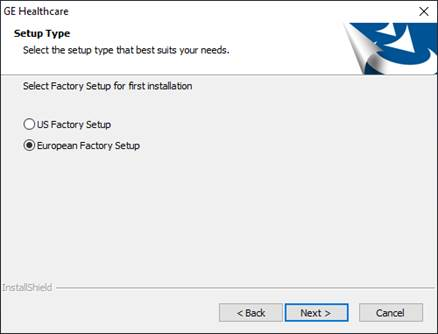8. Ensure that European Factory Setup is selected; if this is missed, you may need to reinstall the software.