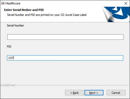 6. Locate the software serial number found on the software license dongle or the option codes sheet. Enter the serial number in the format SSG[SERIAL]HA. The PID is always CST, then click Next. So, if the serial number is 106001027, the software serial will be SSG106001027HA. The PID is always CST, then click Next
