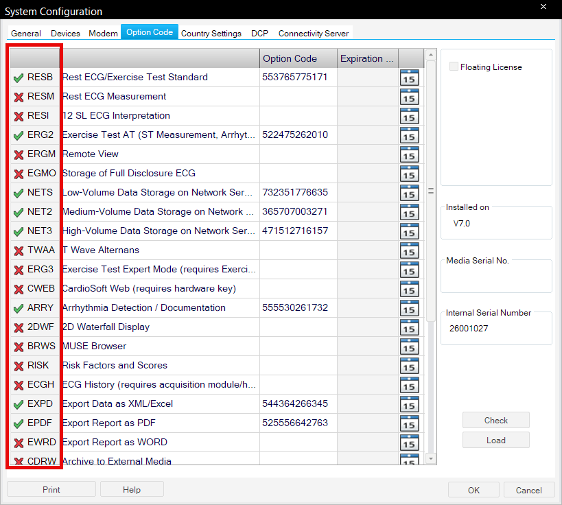 7. If the Option codes are correct, you should see a green tick against the imported codes. Click OK