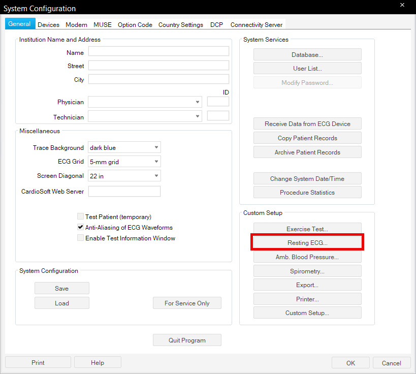 9. Click Resting ECG...