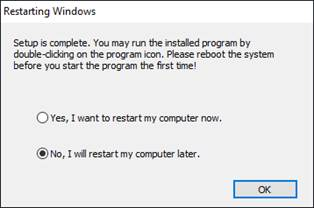 12. Select No, I will restart my computer later and then click OK