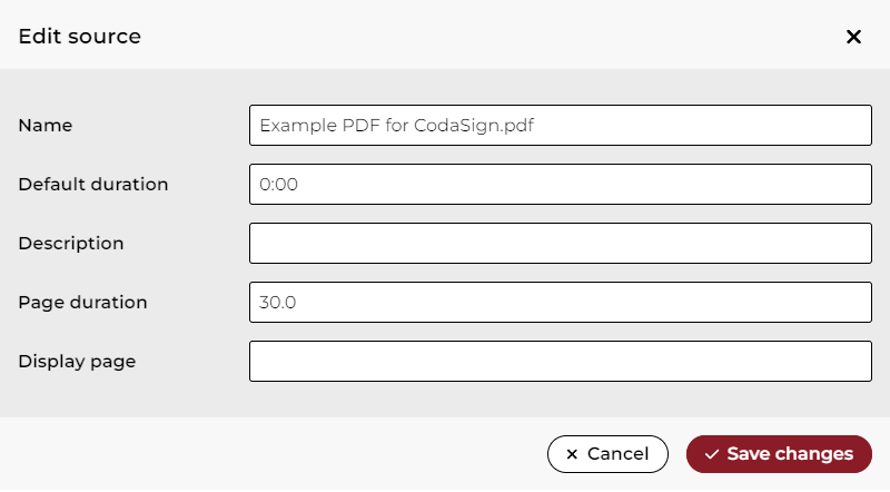 - With the PDF files, you can set a default duration for the entire document or you can choose a duration for each page. You can also set it to display a single page.
