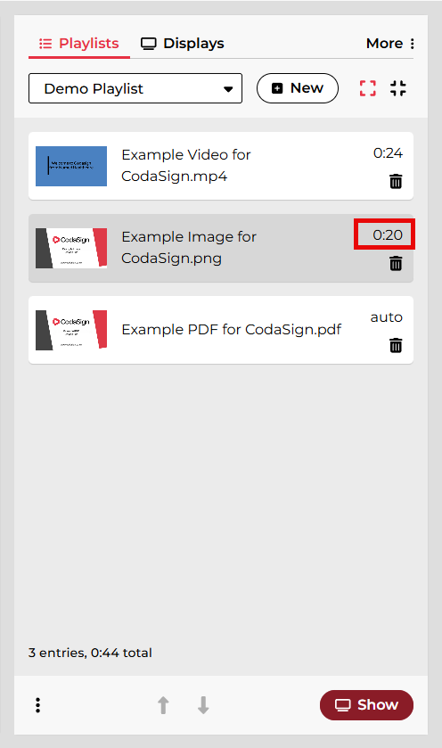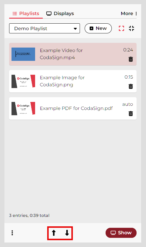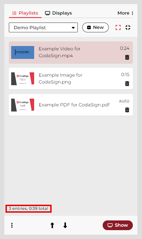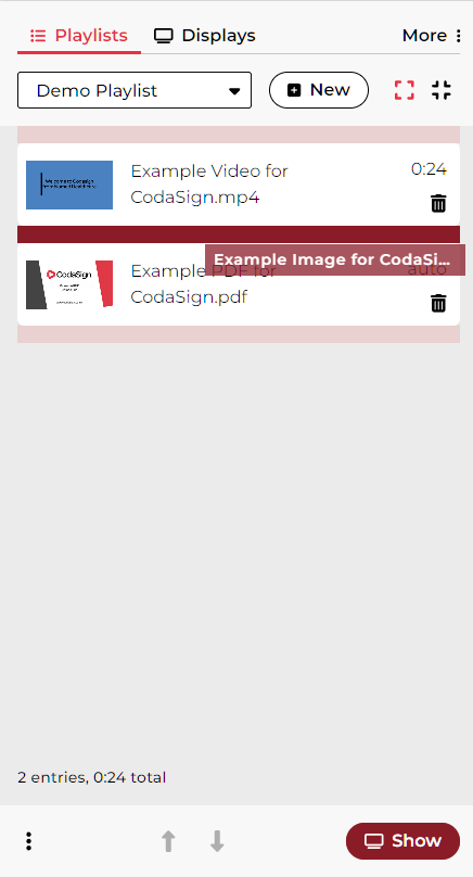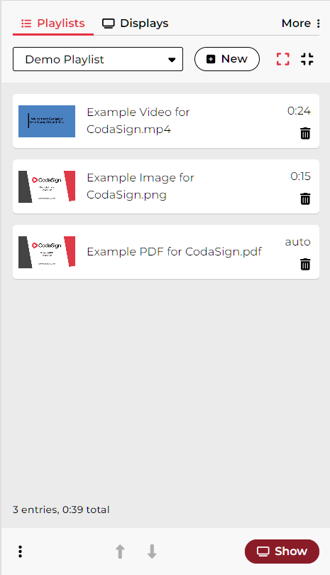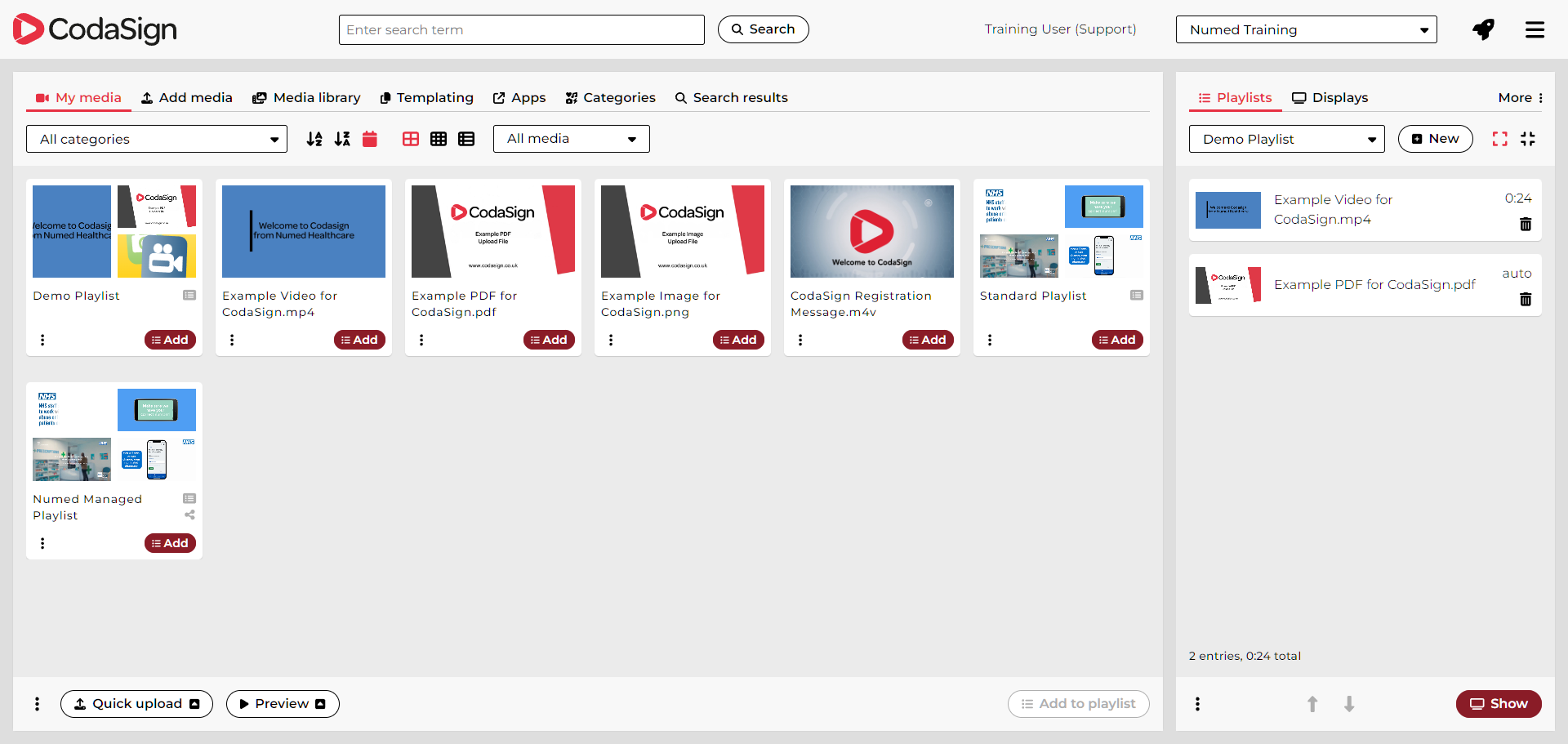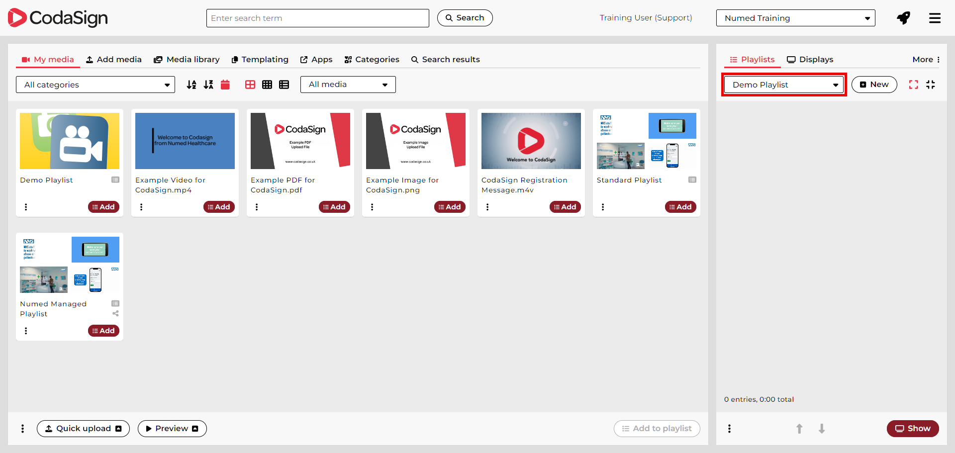 Once you have logged in and opened CodaSign, you will see the playlists available to your organisation by clicking the Choose playlist dropdown menu.