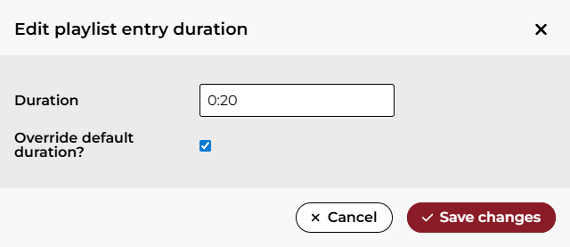 You will be able change the Duration of that media, and if you tick the Overide default duration box, it will only change the item in the playlist.