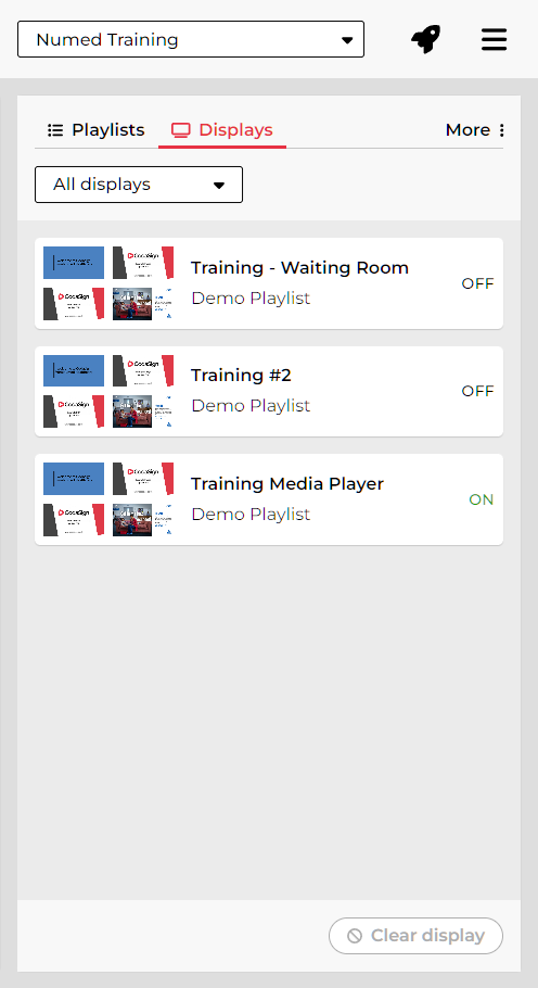 This will show a list of your Media Players, which playlist is assigned to them, and whether each player is ON (online) or OFF (offline).