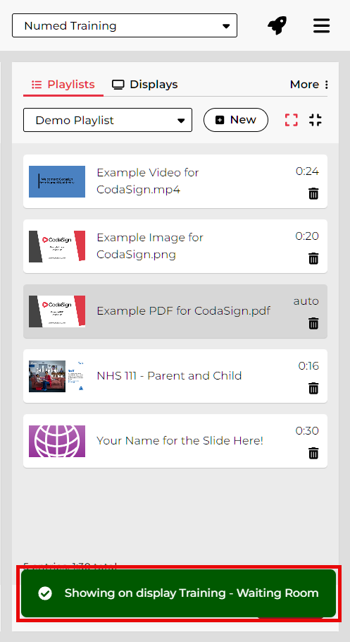 - Repeat steps 2 and 3 if you want to send this playlist to any other Media Player in your organisation.
