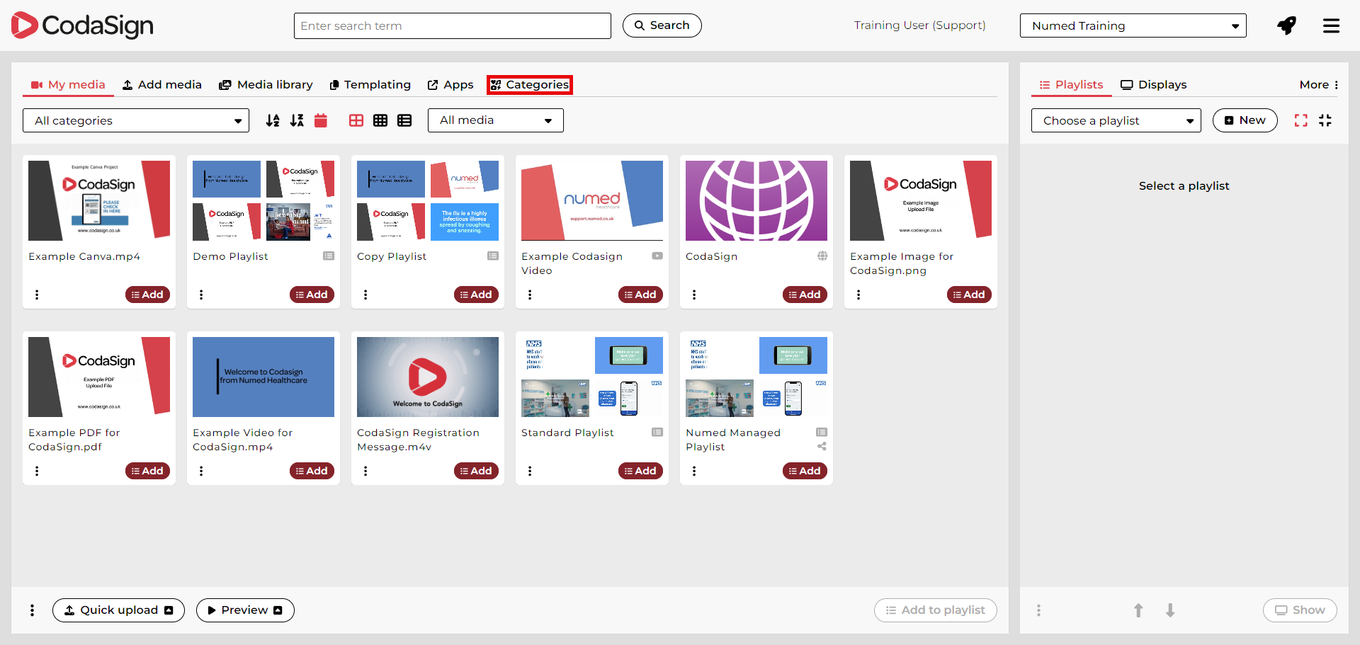 The Categories section lets you create custom categories and apply them to your uploaded media. If you have a large library of content, using categories will make it much easier to organise, sort, and quickly find the media you need.
