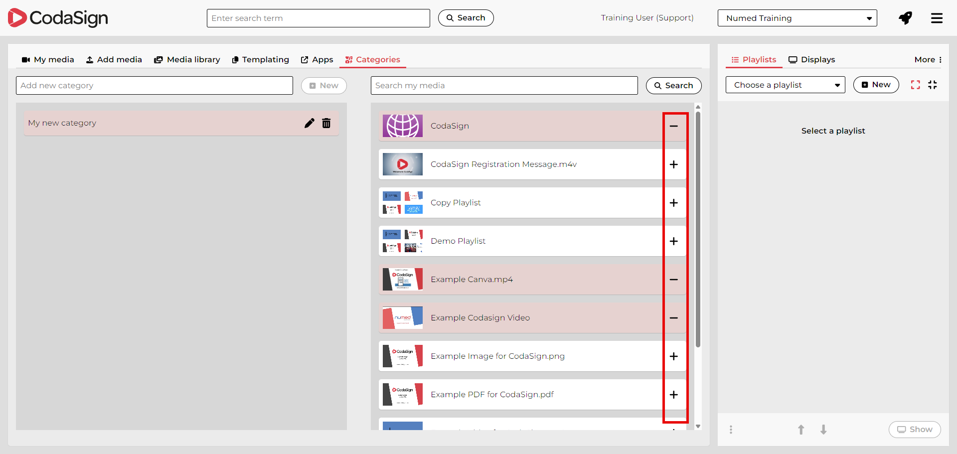 Once you've located your media, click to assign it to that category. If you want to remove the media from that category, click .