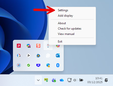 To go into the settings, you will need to right-click on the icon and choose Settings.