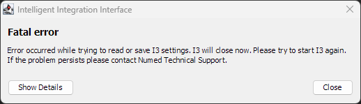 If the Intelligent Integration Interface software runs into problems on launch, it will often show as a fatal error.