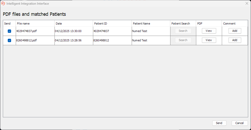 - You will then be presented with a list of ECGs that are ready to be uploaded to the patient’s medical record. ECGs that match the currently selected patient within the clinical system will be automatically selected.