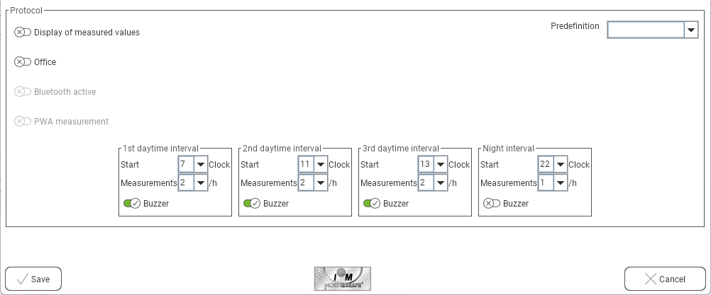 - Set the “Measurements” per hour to the required number for each of the four intervals.