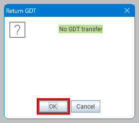 - Click “OK” on the “No GDT transfer.”