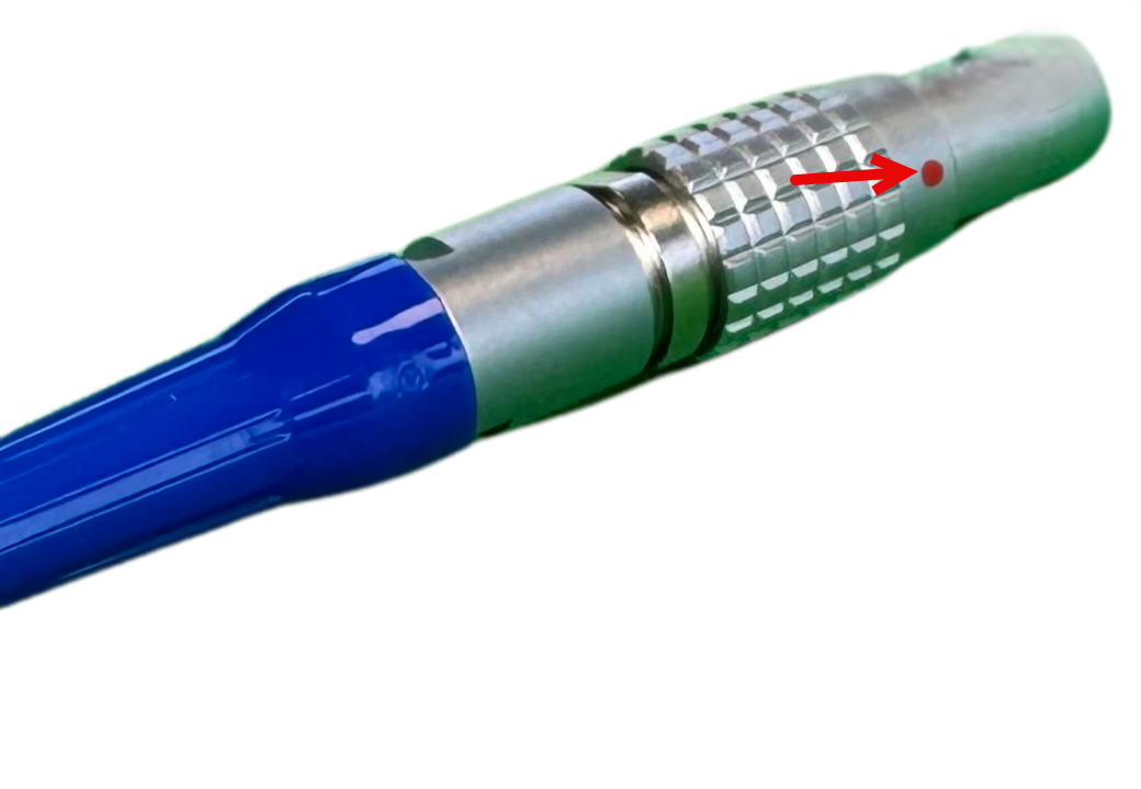 Locate the red dot painted on the silver cylinder end of the download cable.