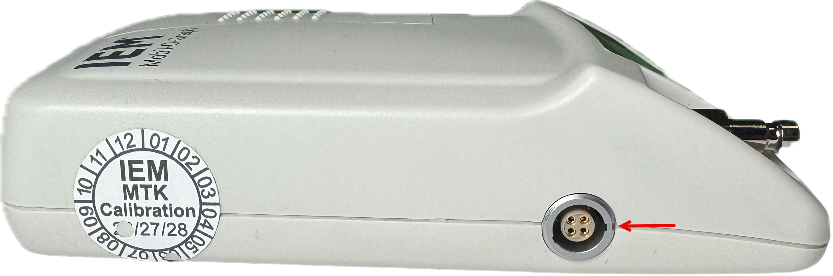 Locate the red dot painted on the edge of the data port, which can be located on the side of the device.
