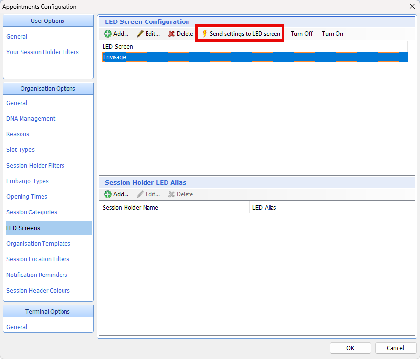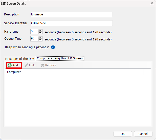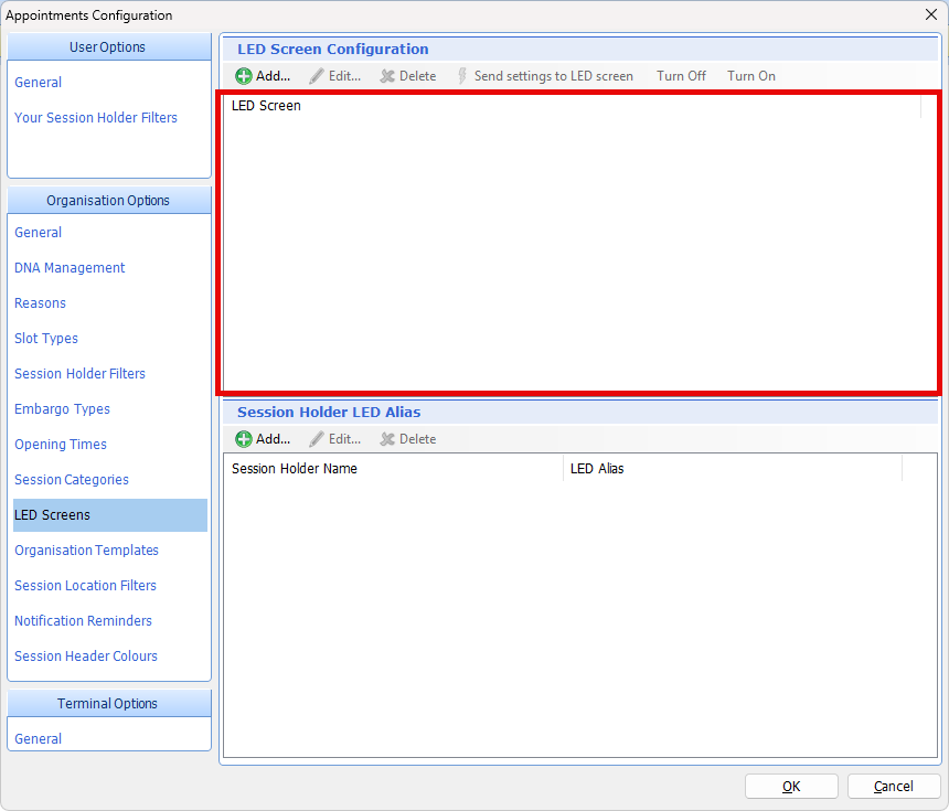 - If there are no entries in the LED Screens box at the top, click