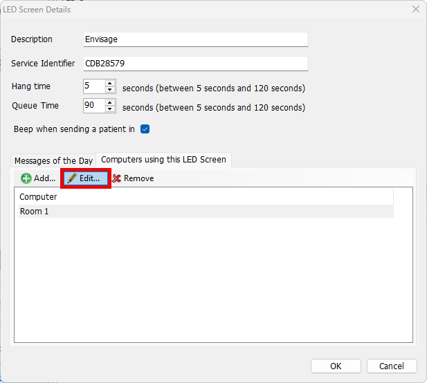 - If you need to amend an existing Computer/room, select the entry and click