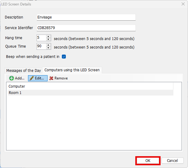 - Fill out the room name and the Computer name, which will be the PC name or asset tag from the computer in that room. Then click OK.