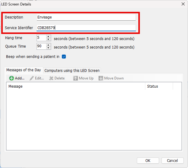 - Fill out the Description and Service Identifier - The description is normally the physical site name, and the Service Identifier will be your EMIS cdb number.