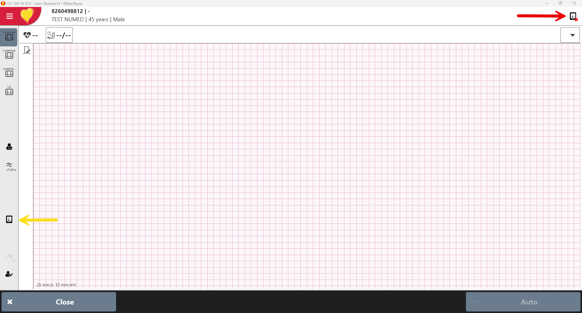 To resolve, click the ECG icon as shown by the yellow arrow on the left-hand side, then select the correct serial-numbered unit.