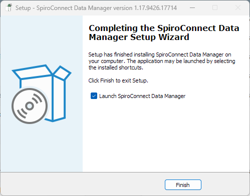- Ensure Launch SpiroConnect Data Manager is ticked and click Finish