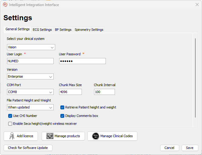 We recommend that you use a dedicated Vision account with the Intelligent Integration Interface. If one hasn't already been setup we suggest a username of "NUMED".