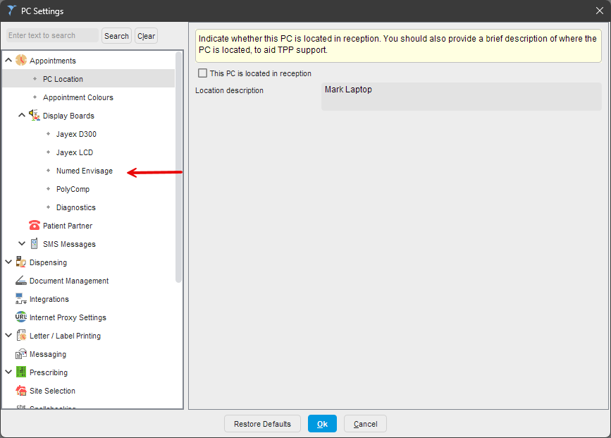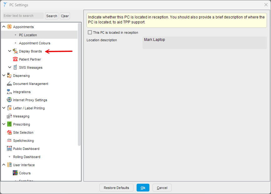 With the patient call, there is a Patient Call System physically attached to a single PC within the surgery, which is either the Gateway PC or one of the reception PCs. The SystmOne on that PC has different settings from the clinical rooms.