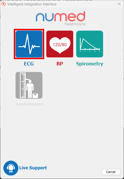 Select ECG from the product selection screen