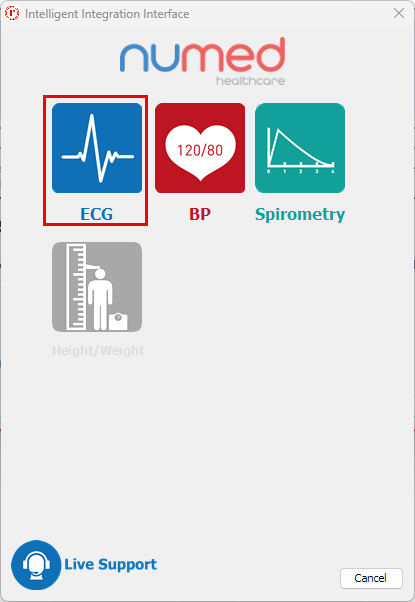 - Select ‘ECG’ - if you have more than one ECG system, you may need to select ‘GE CAM-USB’