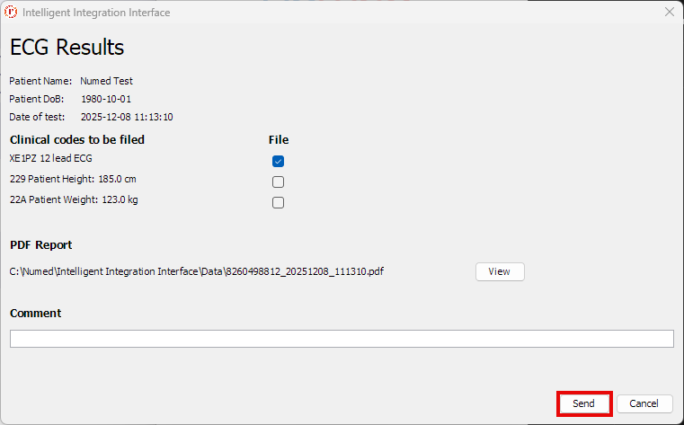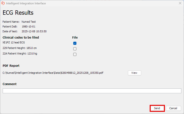 - After a few seconds, the filing box will appear, add any applicable comments and click Send.