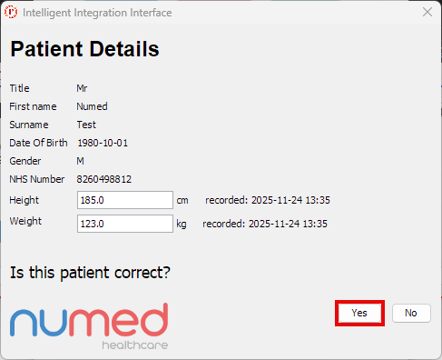 - Confirm the patient details are correct, then click Yes.